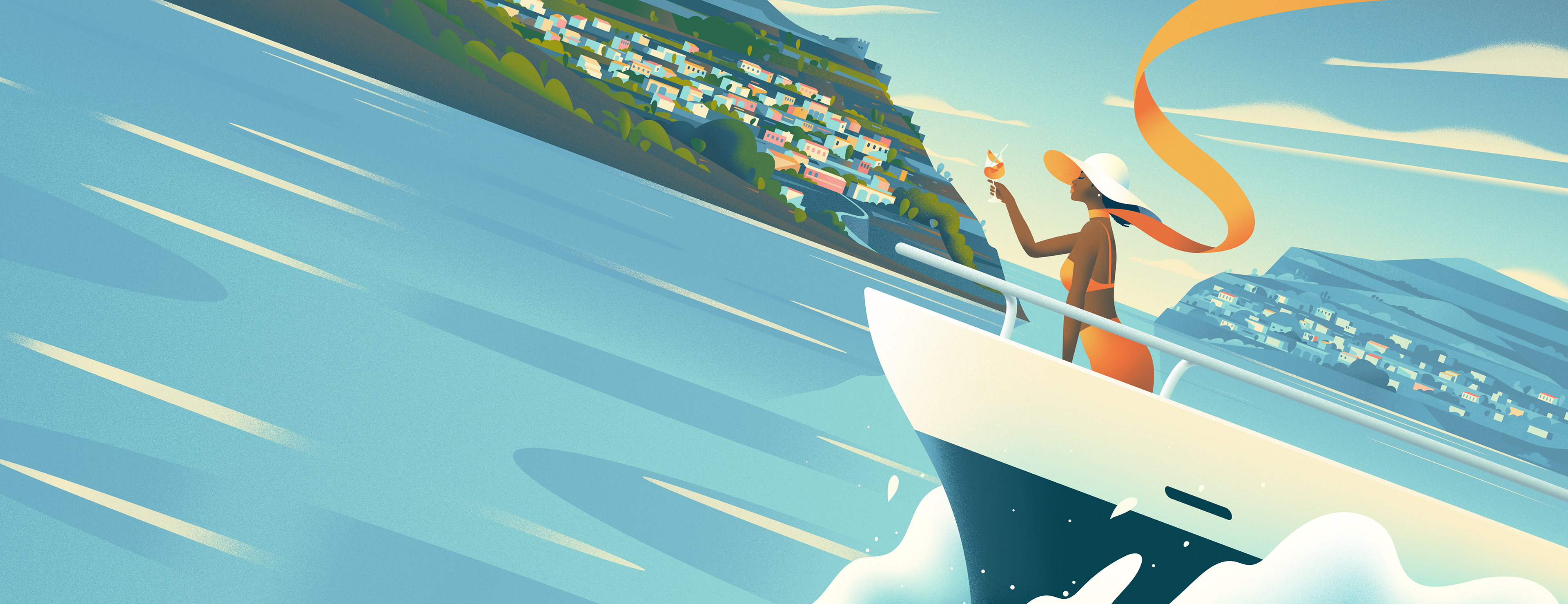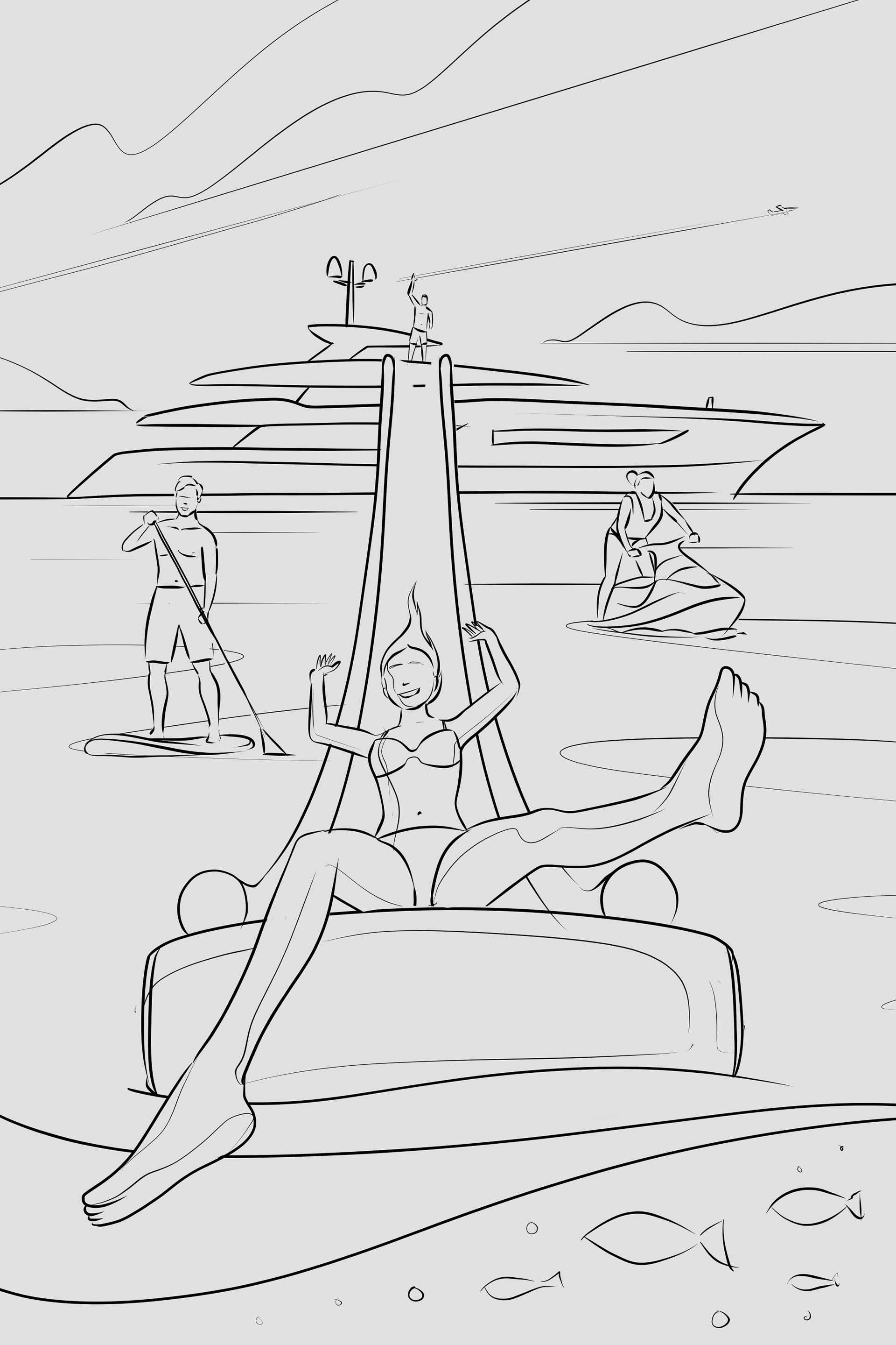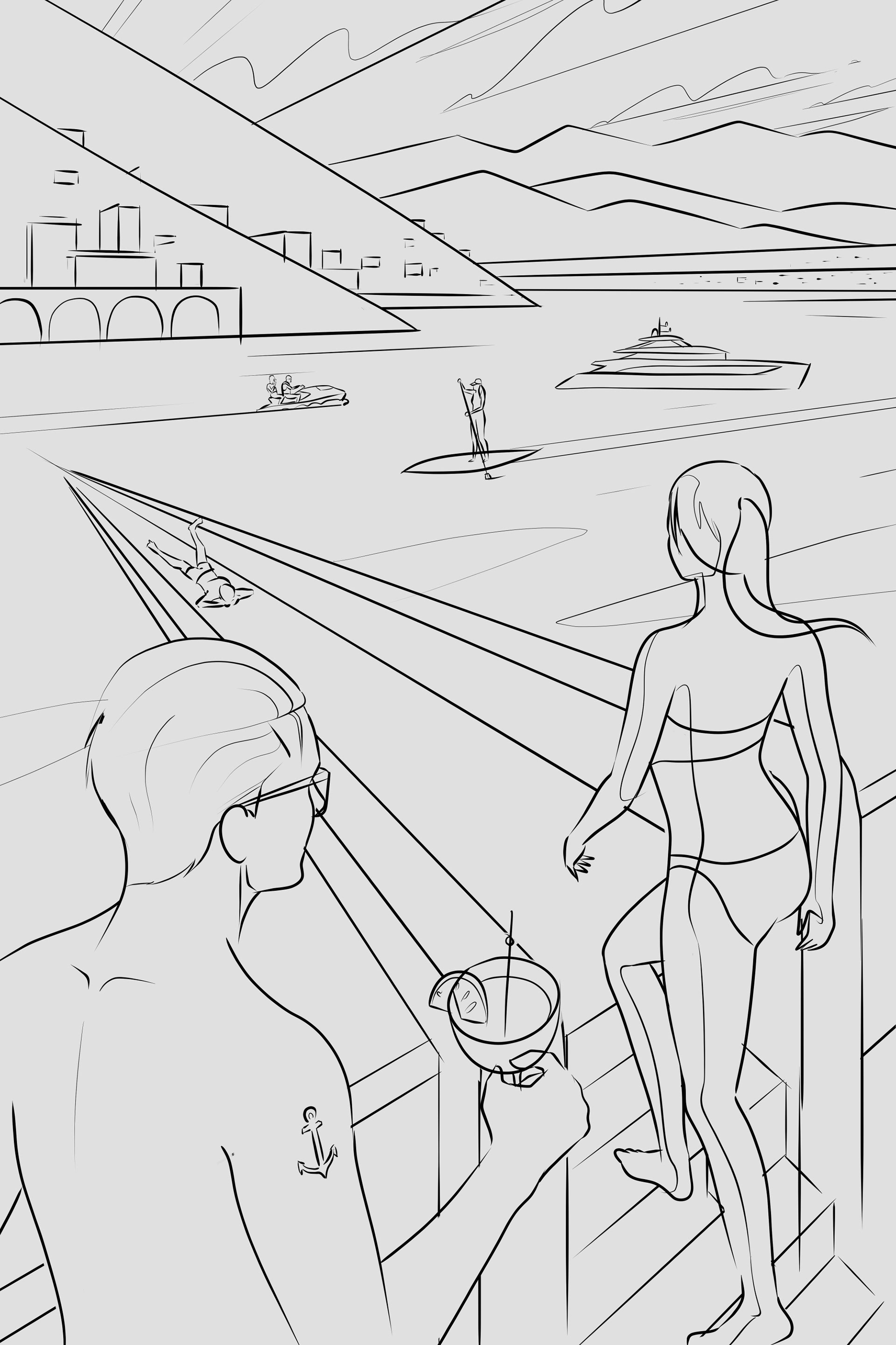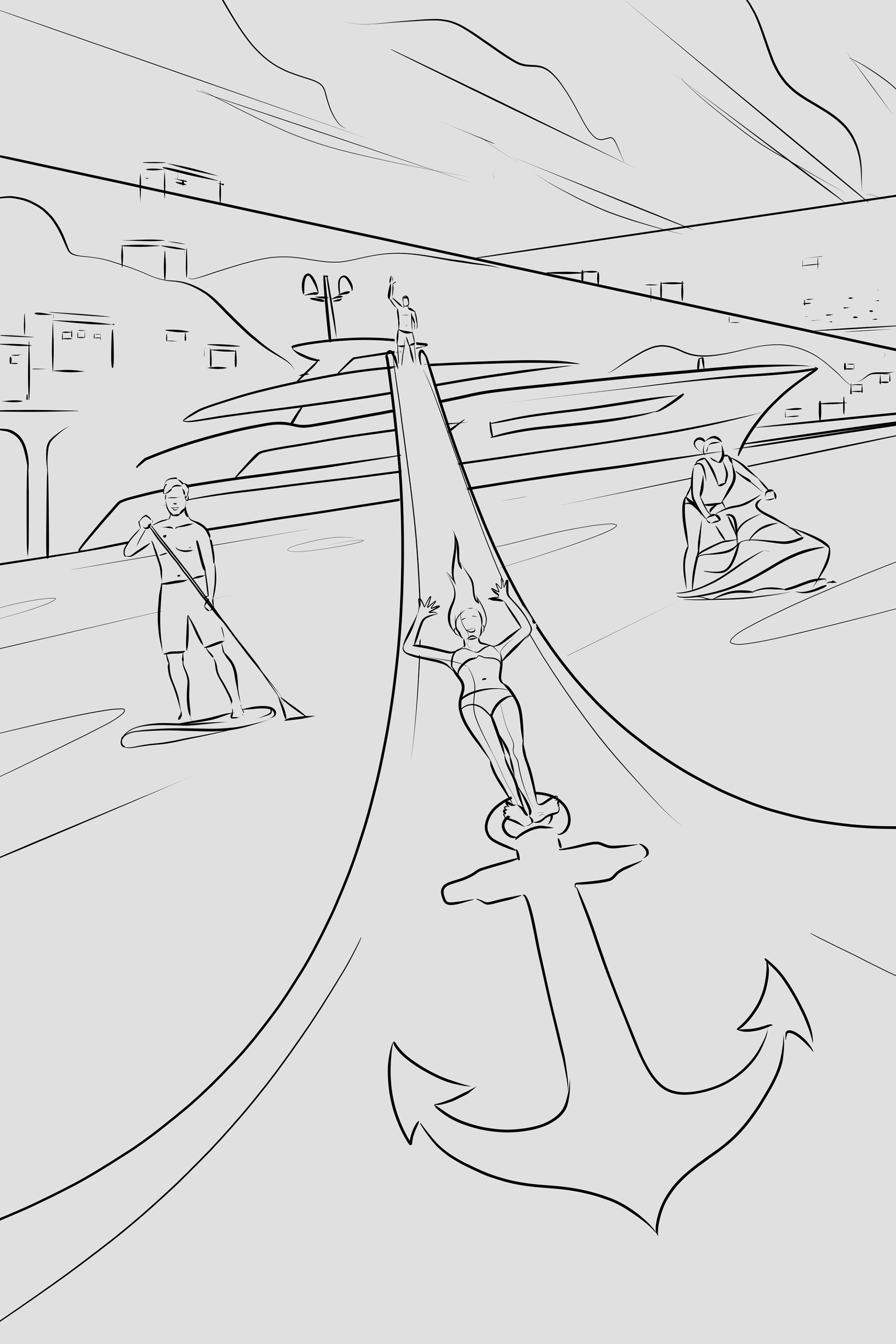 One of my notable projects involved collaborating with State to craft the key visual for season eight of Below Deck Mediterranean. The illustration provides a glimpse into the opulent lifestyles of individuals vacationing on superyachts, capturing the essence of the Sardinian coast with its vibrant, picturesque buildings in the backdrop.