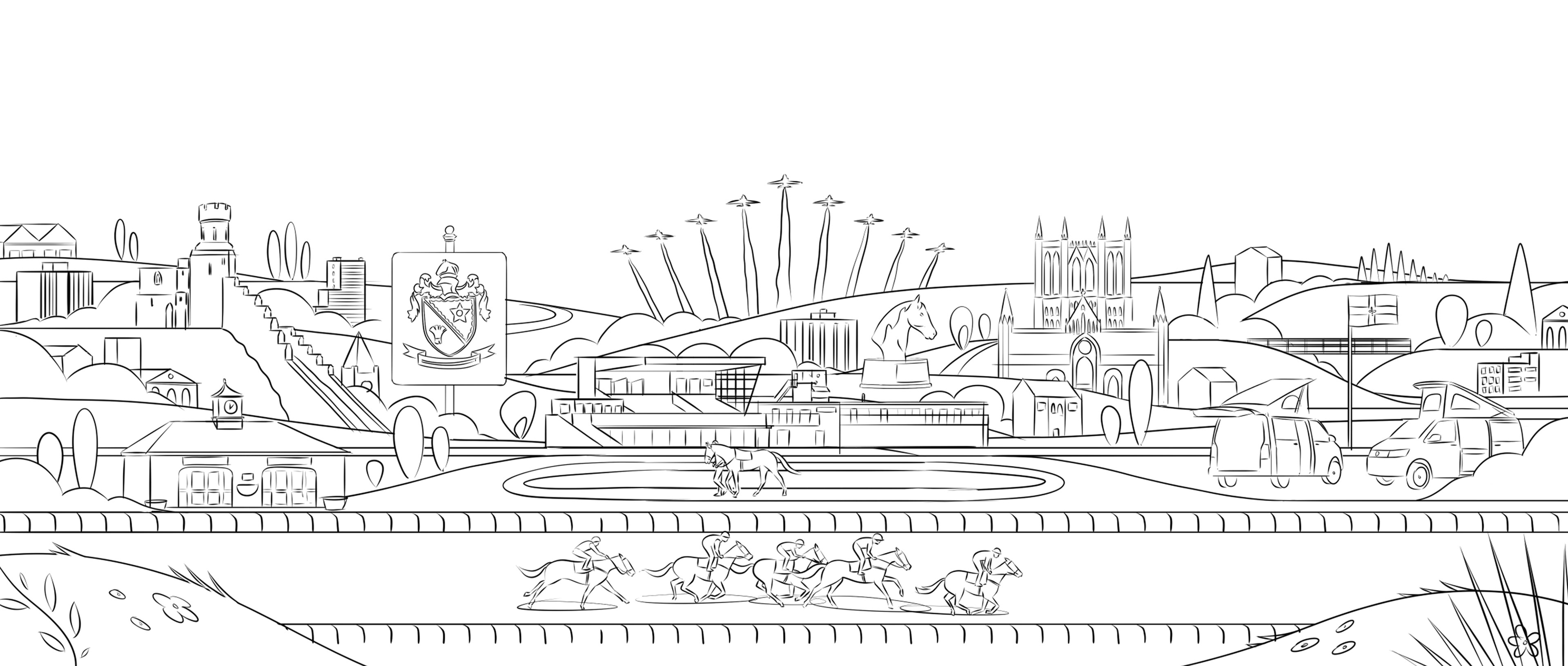 As part of a major rebrand by Thisaway of the historic The Jockey Club, I was commissioned to create a series of fourteen key illustrations for each racecourse, including iconic locations such as Aintree, Newmarket and Cheltenham.
