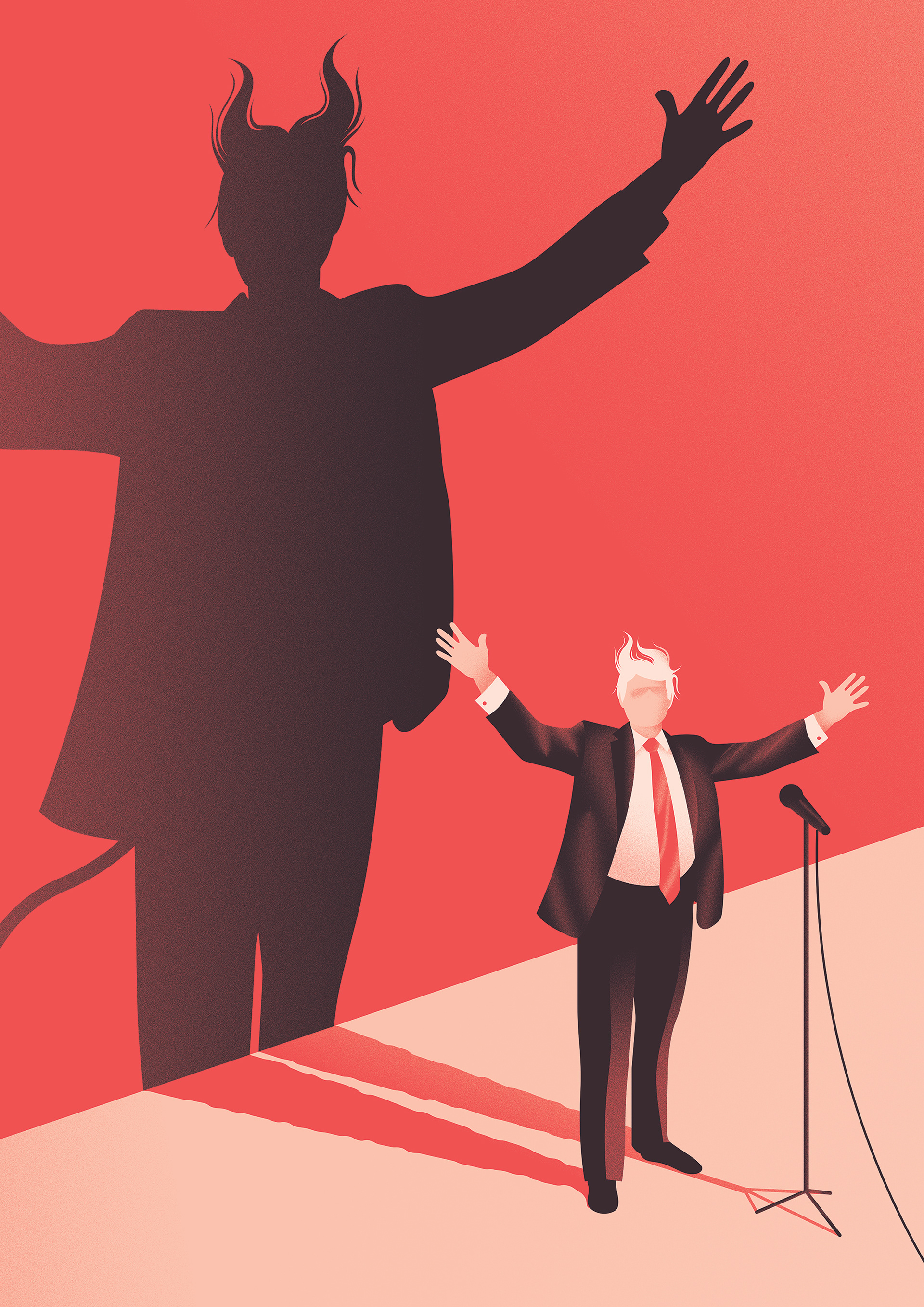 I remember hearing about a tabloid headline earlier this year of "Trump is the Antichrist", after the Pope criticised him for being 'un-christian.' Thought that would be fun illustration to visualise and this was the result.